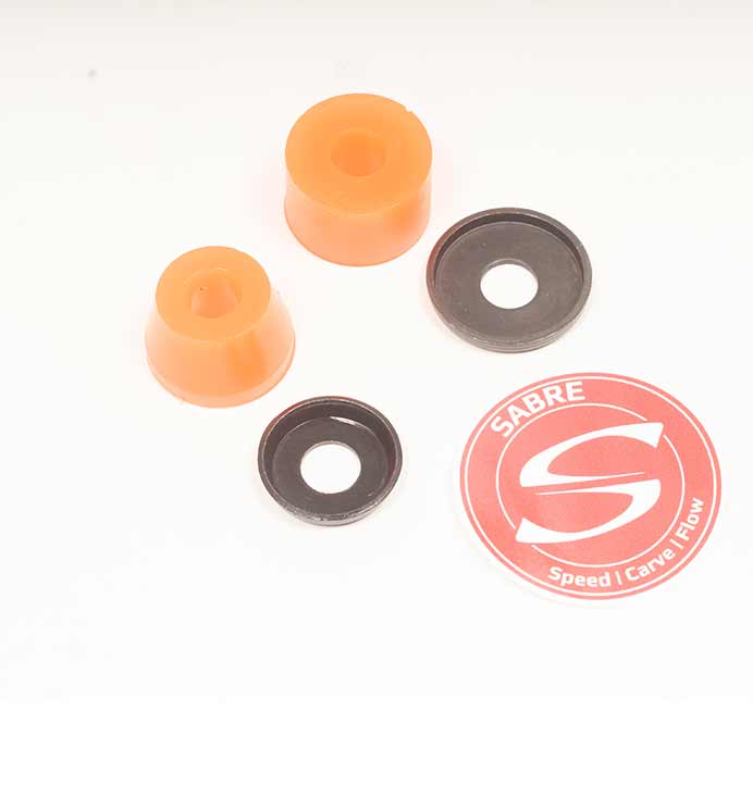 A Sabre Cone/Barrel kit consists of one Cone bushing and one Barrel bushing in your choice of durometer for maximum lean and carve. – to transform your mediocre feeling longboard trucks into something really special.